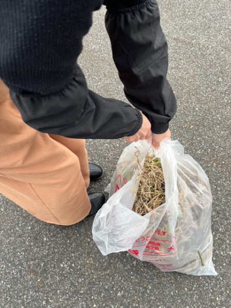 皆で頑張った甲斐もあり、ごみ袋いっぱいの草を集めることができました!